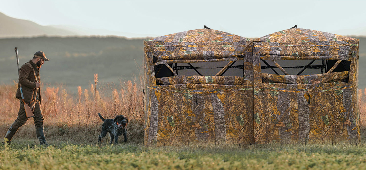RPNB Huntuing Ground Blind, One-Way See-Through Side-By-Side 4-6 Person Hunting Blind, Two Pop-Up Camouflage Hunting Tents with Noise-Free Windows