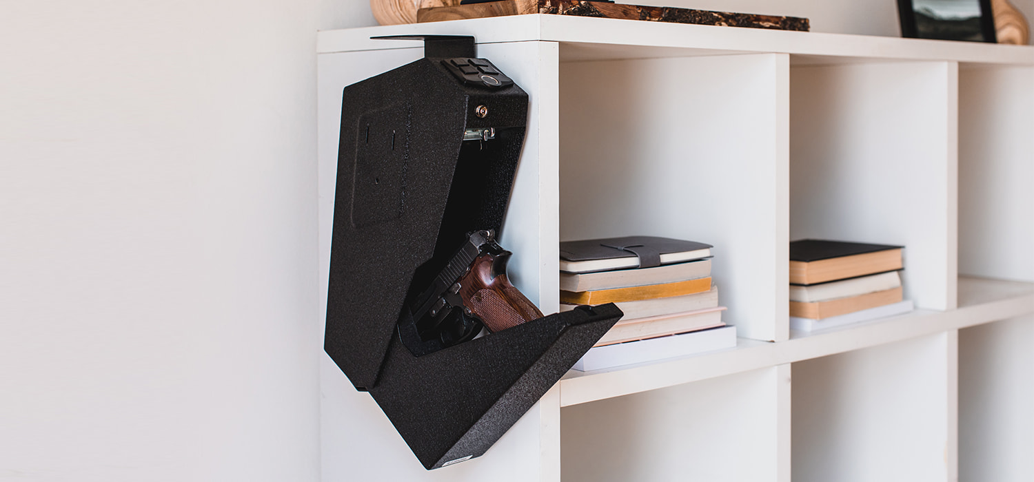 Fingerprint Handgun Safe With Quick Access Drop Down Lid, Desk Mounted Pistol Safe-RPNB RP311F